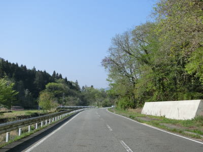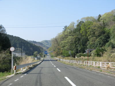 | 府中市に入ってからも緩やかな上り勾配が続いている。勾配が下りになるのはやや急な左カーブを曲がって野市大原集落に入ってからである。比較的開けた谷筋を下っており、カーブが非常に緩やかなため走りやすい道路状況である。 | ||