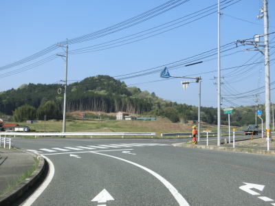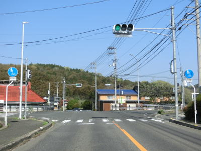 | 葛子川の流域を緩やかに下って行く。歩道は片側にしか設置されていないが、車両と歩行者の通行量を考えれば充分であろう。緩やかな勾配がさらに緩やかになるとR2新庄交差点に至る。終点が接続しているR9と対をなすR2との交差点だが、起点ではなく直進してさらに南に向かう。 | ||