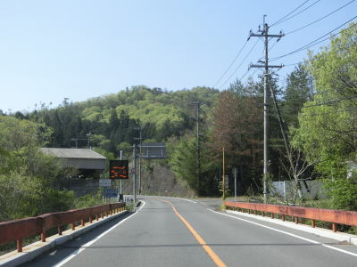 | 広島r409交差点を過ぎてすぐに市町境を越えて三原市に入る。平成の大合併以前は大和町だった地域であり、三原市の中心部からは離れた場所である。山間部ながら殆ど勾配のない2車線道路を走り、上り勾配が始まる辺りで広島r45交差点を通過する。 | ||