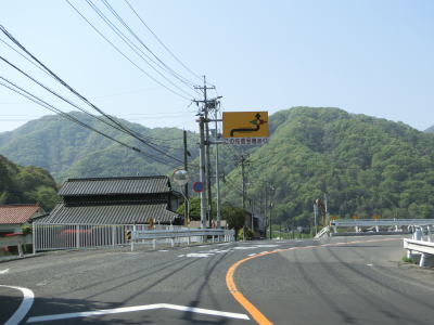 | 椋梨ダム以南は深山渓谷と呼ばれており、走行注意レベル4に指定されているだけあって山岳部を通っている。ただ、道路状況はセンターライン付きの2車線道路であり、急なカーブはあるものの勾配は緩やかで酷道と言える程ではない。夫婦岩やその傍の中州には小規模な園地が整備されている。 | ||