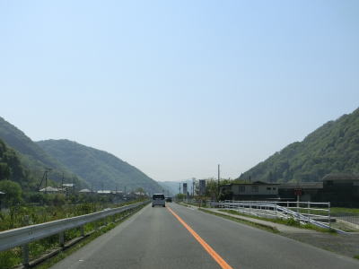| 新庄交差点から南は賀茂川の流域を走る。左岸を走っていると前後にS字状の急カーブのある大福地橋を渡って右岸に移って堤防上を走る。竹原市の市街地に近い場所ながら交通量はさほど増えず快走できる。 | ||