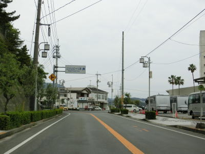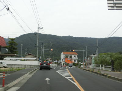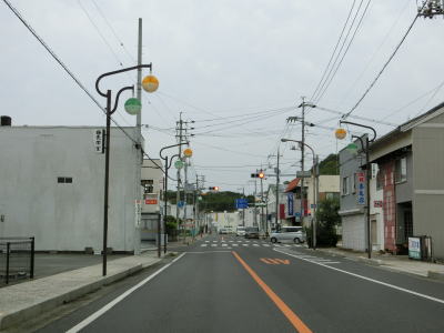 | 西村農免農道との交差点を通過して海に沿って大きく右にカーブすると小豆島町の中心部に差し掛かる。中心部の西端にある草壁港は高松港を結ぶフェリーが就航していたが、利用客の減少はコロナ禍によって池田港発着便と統合される形で休止となっている。あくまで“休止”だが、実質的には“廃止”と思われる。 香川r29との草壁本町交差点を通過する。r29は寒霞渓公園線という路線名であり、日本道路公団によって建設されており、かつては有料道路であった。草壁本町交差点を過ぎてからは小豆島町の中心部を通っているせいもあって沿線の建物だけでなく交通量も多い。 |