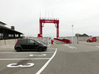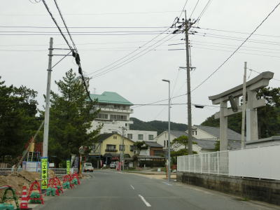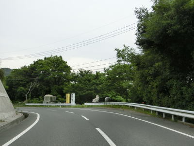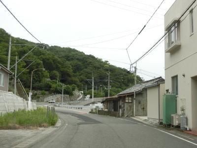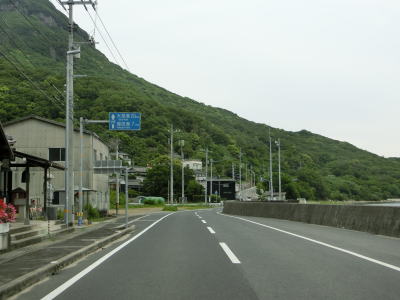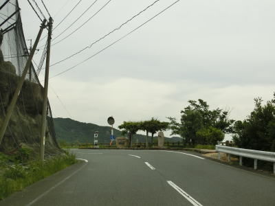 | R436の、特に小豆島内の東部の特徴として沿線に石のオブジェのようなものがいくつか置かれている点が挙げられる。これは小豆島が花崗岩の産地である事に由来すると思われる。福田集落に向かって下っていると港内に四国フェリーの船舶が視認できた。9:20福田港発の2便目であろう。沿線の家屋が増えた所で下り勾配が終わって平坦になる。 | ||