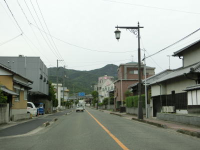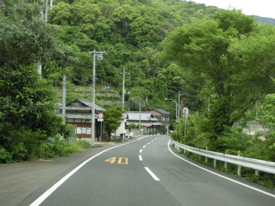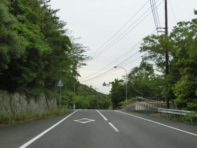 | 大阪城石垣石切丁場跡(の入口)以北は旧道との交差点を何ヶ所も通過する。各々の旧道の距離は非常に短く、中には通行できない箇所もあるが、ウォっちずにおいて現役の国道として表記されている。直線道路を下って旧道と合流すると同時に当浜集落に入る。当浜橋を渡ると上り勾配となって標高を上げる。 | ||