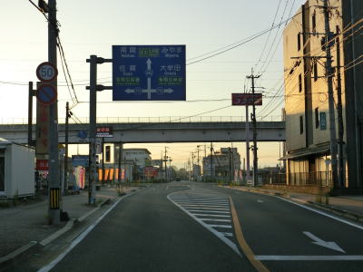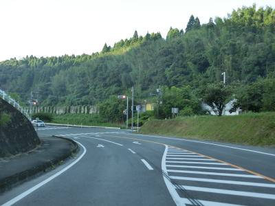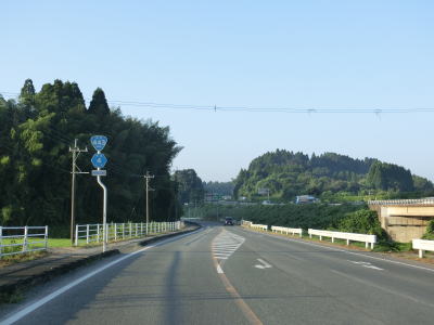 | 物見塚交差点からはバイパスではなくなるが、改良されており概ね快走路と言える道路状況である。E3九州道をくぐって東西が入れ替わってからは谷筋を通っているが、勾配は非常に緩やかで急カーブもほとんどないため走りやすい。 | ||