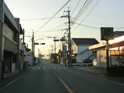 | R443の起点は福岡県大川市の市役所に近いR208・R442中原交差点であるが、R208に重複しているため案内標識におにぎりが表記されていない。中原交差点の約50m西の案内標識には300m先のしげあみ交差点がR442との交差点としている。さらにはしげあみ交差点の直近の案内標識も同じ表記内容だが、R442が交差しているのはあくまで中原交差点である。本来のR442よりもしげあみ交差点で交差している道路の方が道路状況が良いため、しげあみ交差点にR442が交差しているように案内されているものと思われる。 中原交差点からR208重複区間を走り始めるとごく普通の対面2車線道路で始まる。筑後大川駅が比較的近い位置にあったが、国鉄佐賀線が1987年に廃線となっているため現在は近くに駅が存在してない。それでも市役所に近い場所であり昼間は交通量が多い。 |
