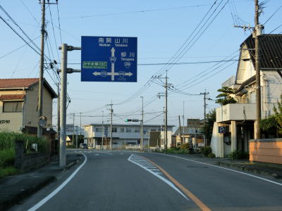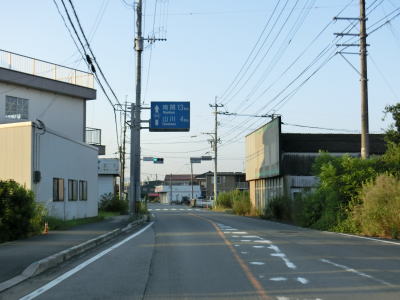| 43.福岡r94交差点以南はまた狭苦しくなる | 44.射的橋 | 45.R443山川バイパスとの物見塚交差点を左折 |