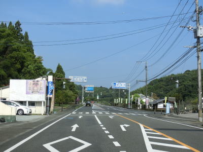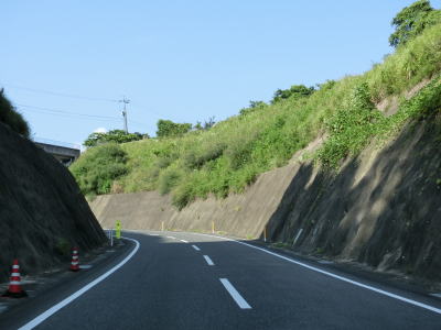 | 佐俣交差点からはやや急な上り勾配となって2つの跨道橋をくぐった後に視界が開ける。蛇行している釈迦院川に沿っているためカーブは多いが、センターライン付きの2車線道路と比較的整備されており走りにくさはあまり感じない。 | ||