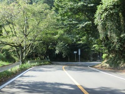 | 154.佐俣交差点からは上り勾配 | 155.蛇行する釈迦院川沿いのためカーブが多い | 156.交通量は少ない |