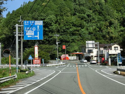 | 氷川ダムの左岸に至る市道と接続している旧道らしき道路との交差点を通過するが、現在の国道沿線にも家屋が建っている。小さな集落を繋ぎながら氷川の右岸を走り大道橋で左岸に移る。以降も道路状況に変化はなくごく緩やかな下り勾配の2車線道路が続く。カーブは多いが極端に急なものはなく概ね走りやすい。 | ||