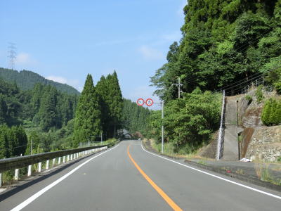 | 払川集落を過ぎると釈迦院川から離れ、勾配がややきつくなる。長い勾配を上っているとやや急な右カーブを曲がって八代市に入る。平成の大合併以前は泉村だった場所である。 | ||