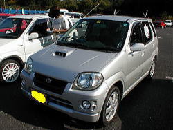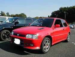 ミニゼオさんのH14VミニカターボZEO。型式からも判るとおり今回一番古い型で、もう街で見ることもほとんどなくなってしまいました。しかしミニゼオさんのミニカはとてもきれい。大切に乗られているようです。今回は岡山からの参加です。 PEXさんも同じ型のミニカ乗りなのだが、今回は残念ながら人間のみの参加となっています。 |