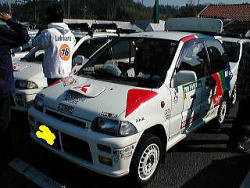 自分でこつこつと作ったカッティングシートでラリーレプリカをされていて非常に目立つ仕様になっています。実物を初めて見ましたがとてもきれいに仕上がっており、実際よく目立っていました。 |