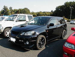 ヤンさんのエアトレック。詳しくは見ていないが、ラリーアートのアルミを履いていることから結構いじられているのではないでしょうか。それにしても黒の車体に黒のアルミがこれほど似合うとは思いませんでした。 |