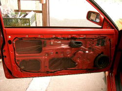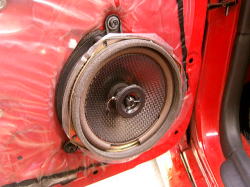 ドアトリムを外した状態。右下にあるのが今回交換する純正スピーカー。 | ||||||||||||||||