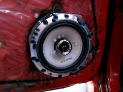 スピーカーと車体のコネクタを接続してから3つのビスを止める。念のためここでオーディオを付けて音が鳴る事を確認してから、ドアトリムを元に戻すと作業は完了する。 スピーカーコードのコネクタ接続が少し面倒だが、それ以外はごく初歩的な簡単な作業でできる。しかしスピーカーから聞こえる音は純正と比べ物にならないほど良くなる。簡単な割に効果の大きい作業である。 |