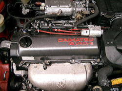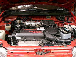 1600cc16バルブのOHCエンジンである。トップグレードなのにOHC?と思うかもしれない。確かに馬力もトルクも控えめだがそれゆえ扱いやすく、車重が軽いこともありそれなりにキビキビ走ってくれる。またシャレードのエンジンを排気量アップしたのではなく、元々アプローズやラファーガのものを高回転型にチューニングし専用ステンレス製エキマニを付けたものとなっている。ちなみにガソリンはレギュラー仕様でお財布に優しいエンジンである。ハイオクを入れたほうがノッキングも少なくなっていいらしいが・・・ |