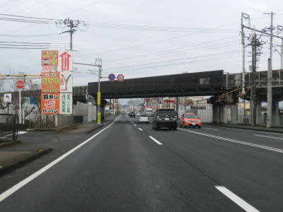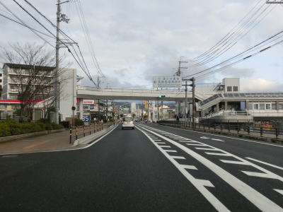 | JRと京阪の石山駅の南を通過し、JR東海道線に沿って北西の方角に進む。相変わらず沿線の商業施設は多いが、信号はこれまでに比べると少ない。JR&京阪の膳所駅付近で大きく左にカーブして進行方角を西に転じる。市道との本宮1交差点を通過すると西向きだけ2車線になるが、左側車線は滋賀r103本宮2交差点の左折車線である。なお、r103は右方向に交差しているが一方通行のため右折できない。左折の市道は滋賀r56との連絡道となっており、R1と大津ICはこの本宮2交差点を利用する事になる。 | ||