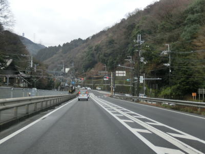 | 逢坂1交差点からは吾妻川の谷筋を京阪京津線とともに走る。名神の橋梁の下からは登坂車線が現れ、京阪をオーバーパスした先の右カーブで合流してくる。その後下り勾配となるが府県境を越えた訳ではなく滋賀県大津市のままである。 | ||
