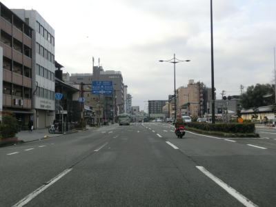 | 484.片側4車線に見えるが左端は路側帯 | 485.西本願寺の手前にS字カーブ | 486.西本願寺の東を南下 |