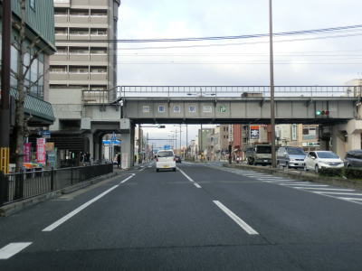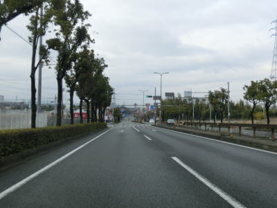 | 京都南ICからも4車線道路が続いている。沿線には工場や物流倉庫が多く、その中に商業施設が点在している感じである。一方通行区間や商店街区間を持つ京都r35との4ヶ所目の交差点である大手筋交差点を通過する。右折する道路は京都/大阪r13であり、一部はR1の旧道でもある。山科区で交差した外環状線の一部の京都r188との横大路交差点を通過するが、約500m東の阪神高速8号京都線が南北に走っているがその下に並走する道路はR1の第二京阪バイパスに指定されている。高架下の下三栖交差点の南側だけが国道で北川は市道と思われる。 横大路交差点から程なくしてフェンスタイプの中央分離帯が現れると同時に緩やかな上り勾配となり、京阪本線の線路の上を通過してすぐに宇治川大橋を渡る。橋からの勾配を下って平坦な道路を走り、承水謙三号水路で市町境を通過して久御山町に入る。 |