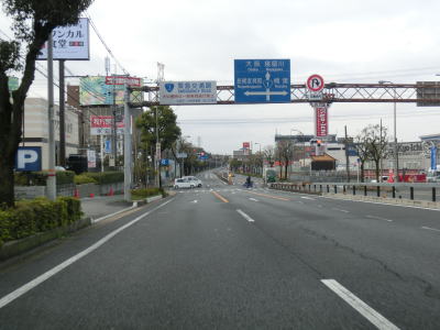 | 枚方駅周辺の枚方市街地のほぼ真東でR307・大阪r139池之宮北交差点を通過する。市街地からはやや離れた位置だが周囲には商業施設が建ち並んでおり交通量の多い場所である。交差点から少し進むと北の枚方市街地側は溝谷川が流れているため標高が低く、R1は緩やかに下った後に少しだけ上り勾配になる。 | ||