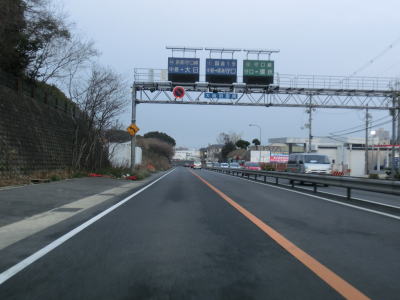 | 天の川交差点から約2.5km、勾配を下り切る直前にR170走谷2交差点を通過する。右折はR170高槻方面と案内されているが、走谷2交差点と出口3交差点の間の50m弱は国道にには指定されていない模様。ただし、R170とR1を往来するに当たってまったく気にする必要はない。 走谷2交差点からは平面道路となり左側からR170が合流してくると同時にR1の右側車線のさらに右にR170河内長野方面の車線が分岐する。合計4車線のうち、間の2車線がR1大阪方面、左右の1車線ずつがR170河内長野方面となっている。ややこしく思えるかもしれないが、要するにR1京都方面から走ってきた場合どちらの車線にいても1回だけ車線変更すればR170河内長野方面の車線に移る事ができる。中振交差点を含む走谷2交差点から中振南交差点にかけては幹線国道同士が交差(並走)しているためよく渋滞している。 |