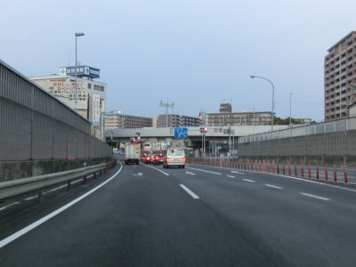 | 532.高架道路から平面道路に下る | 533.一瞬だけ車線が増える | 534.守口JCTの下を左折 |