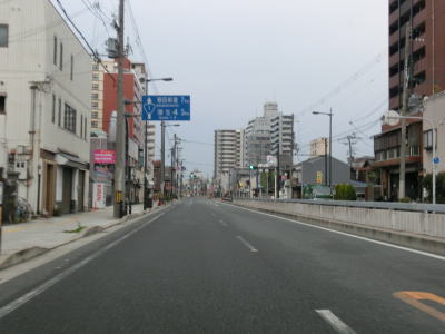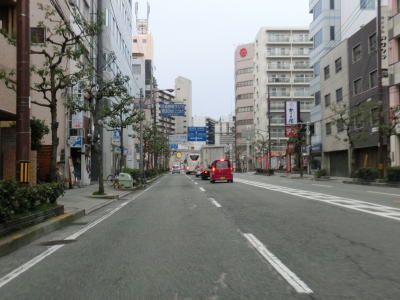 | 大阪環状線のガードから西は中央分離帯がなくなり4車線道路になるが、交通量は減少する訳ではなくむしろ増えている。東野田交差点を通過すると片側3車線となり大川(旧淀川)に架かる桜宮橋を渡る。造幣局の北で緩やかなS字カーブを通過してから大阪r30(天満橋筋)との東天満交差点を通過する。東天満交差点から西の区間は大型車両通行禁止区間(日曜・休日を除く7-19時)である。そんな奴はいないと思うが、大型車両でR1(含むR163)をトレースする際は規制外の曜日もしくは時間帯で走らなければならない。 | ||