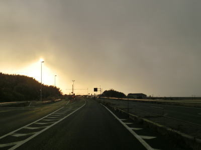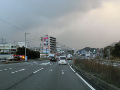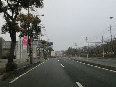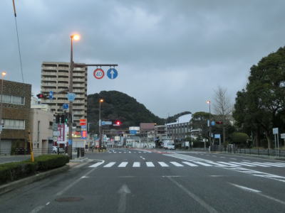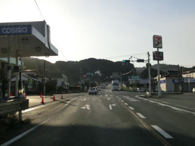 | 福岡県北九州市の北端にして九州の北端でもあるR3老松公園前交差点がR2の終点であり、ここから概ね瀬戸内海沿いを西に向かってR1などとの交差点である梅田新道交差点に向かう。500km超という長大な国道のため、何日かに分割して走行している。 老松公園前交差点はR2とR3に加えて市道が交差しており、市道からR3に左折する事はできない。逆にR3から市道への右折もできない。老松公園前交差点から4車線道路を走るが、九州と中国を結ぶ大動脈であり、早朝であっても交通量は非常に多い。 |