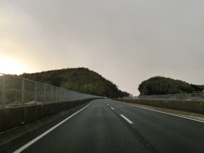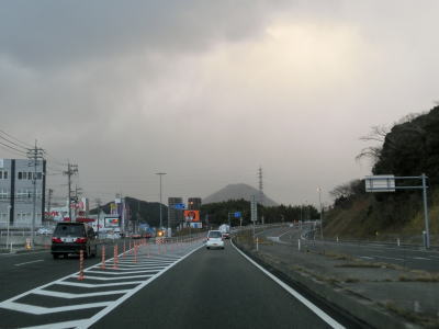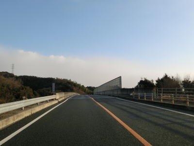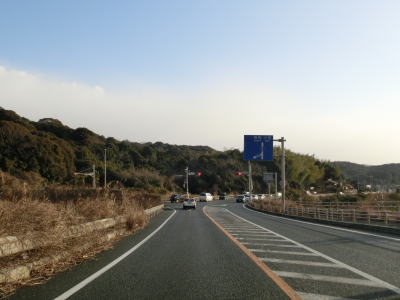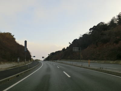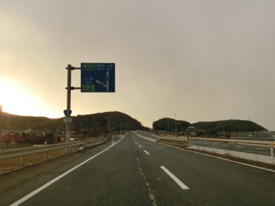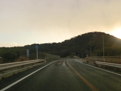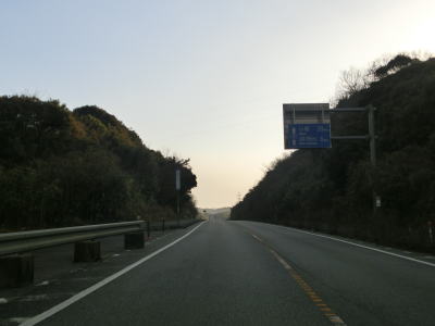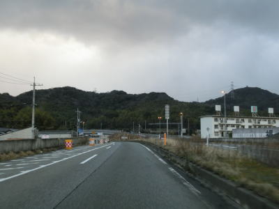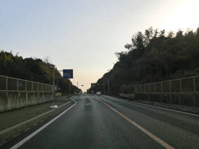 | 車線が減って対面2車線道路になったもののバイパス然とした道路状況が続いており、ランプの直後に山陽小野田市に入る。バイパスの名称としてはR9・R190ランプを境に厚狭・埴生バイパスに変わっている。緩やかな上り勾配の2車線道路を走っていると向原跨道橋で市道の上を通過し、新糸根橋を渡った先で高山トンネルをくぐる。 | ||
