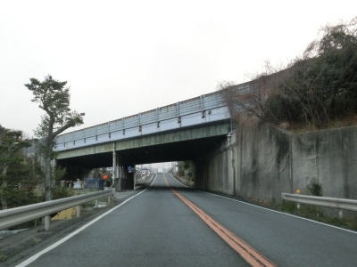 | 宇部興産専用道路の上を通り過ぎて右カーブを曲がると約600mの登坂車線が設置されている。登坂車線区間が終わると下り勾配となり、連続カーブを曲がっていると山陽新幹線の下を2ヶ所くぐる。 | ||