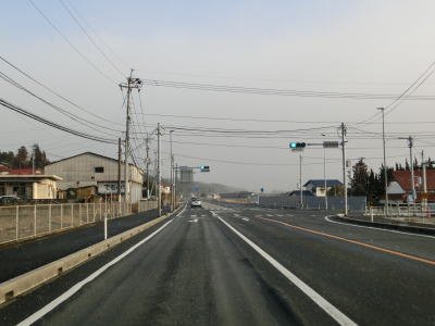| 談合東交差点からはアップダウンのある片側2車線道路となっている。交通量は少なくないがハイペースで流れている。山野井工業団地を過ぎると同時に右側車線がなくなって対面2車線道路に戻る。緩やかにカーブを描きながらアップダウンしている2車線道路を走る。 | ||