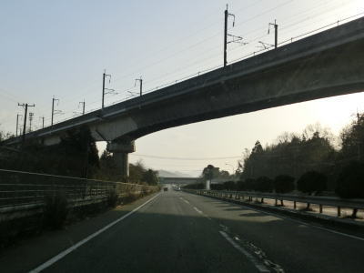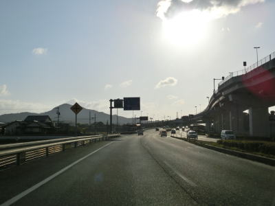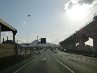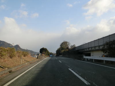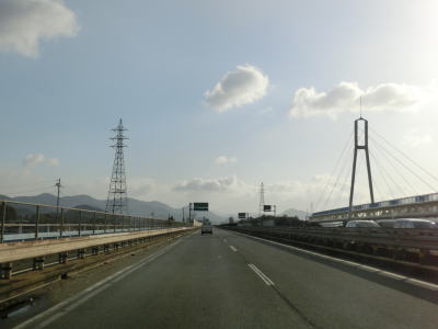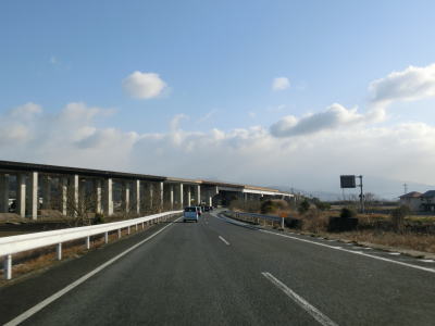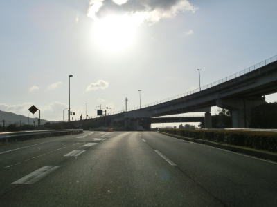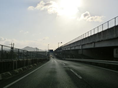 | 小郡IC(交通センター前交差点)を通過してすぐに椹野川橋を渡る。右の下流側にも橋が架かっているが、これは人道橋ではなく車両も通行できる普通の橋である。椹野川橋を渡り終えると山口r61との名田島ICを通過する。 | ||