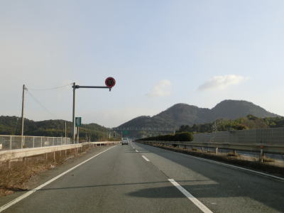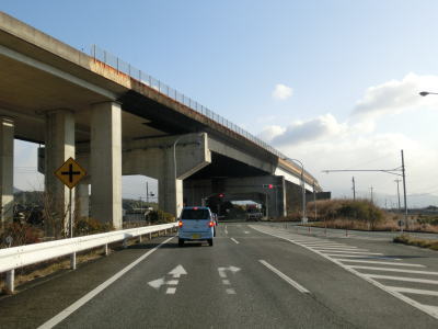 | JR山陽本線に近接した後に離れて、山口r187佐野交差点を通過する。地図ではr187となっているが、案内標識ではr58となっておりしかもシールを貼ってr58にした痕跡が見られる。佐野交差点を過ぎると緩やかな勾配を上り、右側車線がなくなり、その先で山陽道の下をくぐる。 | ||