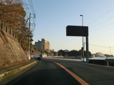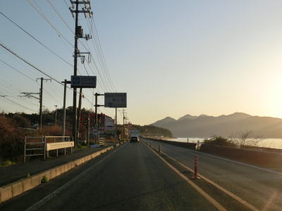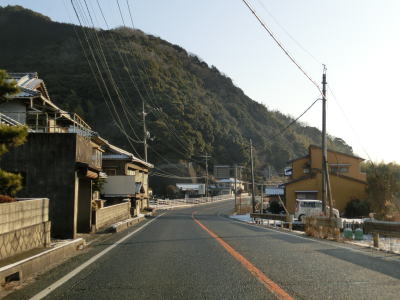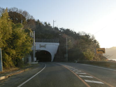 | 再び海沿いとなり、JR山陽本線が接近してきた所で市境を通過して廿日市市に入る。その後はJR山陽本線と海の間を走る。八坂山隧道をくぐってからも同じ状況が続く。海の向こうに陸地が見えているが、それは厳島神社の立地する宮島である。 | ||