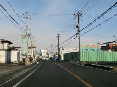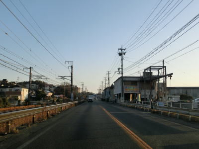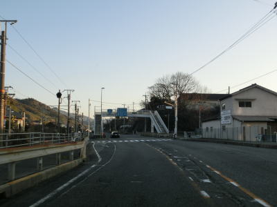 | 和木町に入って程なくして山口r135あけぼの橋交差点を通過する。交差点の北には鉄道の遺構があるが、これはJR山陽本線の大竹駅から分岐した三菱化学への引込線の跡である。 あけぼの橋交差点から少し走ると小瀬川に架かる栄橋を渡って広島県大竹市に入る。栄橋は旧橋を撤去したうえで新たに架け替えられて、2017年3月30日に供用が開始されている。大竹市に入ってからも沿線に建物が多い状態が続いている。交通量も多く流れも良くない。 |