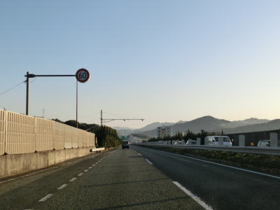 | 254.制限速度は60km/h | 255.五日市ランプ | 256.「岡山174km 福山115km 広島12km」 |