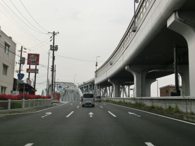 | 281.平野橋東交差点以降はまた片側4車線 | 282.出汐町交差点 | 283.いくつかのカーブを通過する |