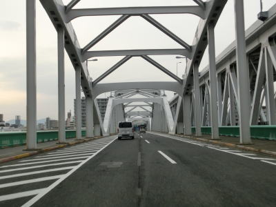 | 270.新観音橋東詰交差点の直後は片側4車線 | 271.左端車線が減少 | 272.新住吉橋 |