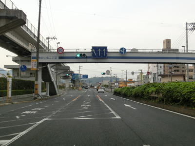 | 広島高速2号線の東雲出入口を通過して右にカーブしていると広島高速の高架の西側を並走する。広島r187仁保交差点を通過した後の広島r86仁保2交差点で左端車線がr86となって側道のような形で分岐する。R2は左にカーブして広島高速の下を通る。真南に走っている状態で、南西に向かうR2が本線を直進し、真南に向かうr86が左の側道になるので側道が左斜め前方(南西)に向かう道路と思ってしまうとルートミスしてしまう。 | ||