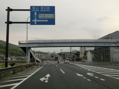 | 志和インター入口交差点から約2.3kmでR486溝迫交差点に至る。R2は右折して福山・三原方面に進むが、直進のR486はR2西条バイパスの旧道に当たる。現在建設中の安芸バイパスが開通して西条バイパス〜安芸バイパス〜東広島バイパスと繋がった際に今回走行した区間が降格する可能性もある。 溝迫交差点からは住宅地の間の上り勾配の2車線道路を走り、約300mで西条バイパス・安芸バイパスの八本松ICとなり、左の直角カーブを曲がる。安芸バイパスが供用された暁には両方向に行けるインターチェンジになるが、2018年4月時点では西条バイパスとしか接続していない。 |