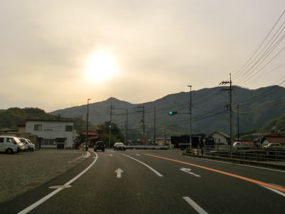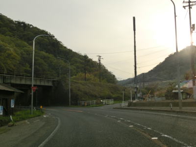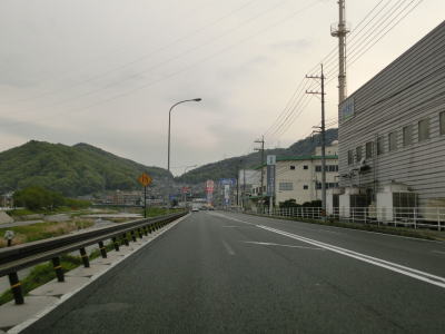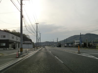 | やや交通量の多い対面2車線道路を走っていると広島r351田万里交差点を通過する。以降もほぼ平坦で緩やかなカーブばかりの2車線道路が続いており、信号機付きの交差点がすくないせいもあってハイペースで流れている。南側に流れている河川が田万里川から賀茂川になってからも道路状況は変わらない。 | ||