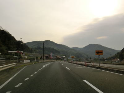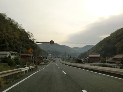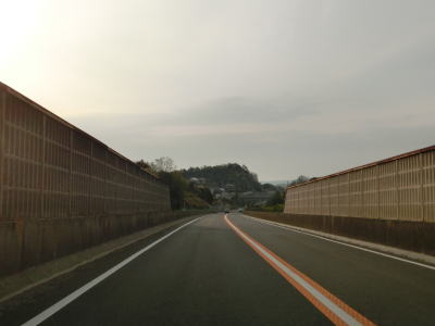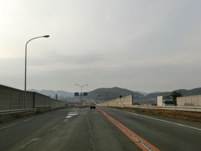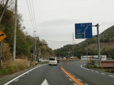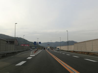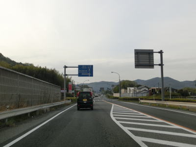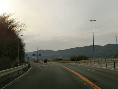 | 勾配が緩やかになると同時に西向き車線と合流して普通の片側2車線道路に戻る。田万里川を2回続けて渡った先で右側車線が減少し、以降は対面2車線道路を東に向かって走る。比較的広い谷筋の長閑な風景だが、すぐ北には山陽新幹線がある。 | ||