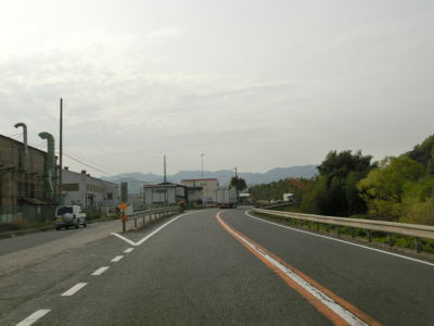| 日名内上交差点からも谷筋を走る対面2車線道路が続いている。長い下り勾配を走っていると左の急カーブを曲がって広島r369交差点を通過する。この交差点付近のカーブを除いて緩やかなカーブばかりで多少のアップダウンはあるものの概ね走りやすい道路状況である。交通量は少なくないが、一桁国道としては長閑な雰囲気と言える。 | ||