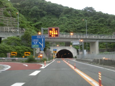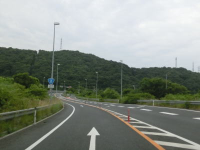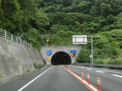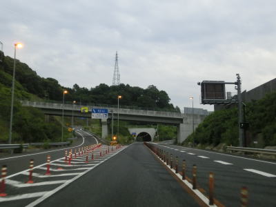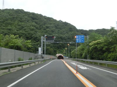 | 新倉ランプからは自動車専用道路のため原付と自転車は走行できない。緩やかなS字カーブを描きながら緩やかな勾配を上り、広島r344の東向き車線のの上を通過した直後に頼兼トンネルに入る。 | ||
