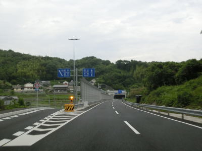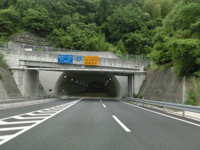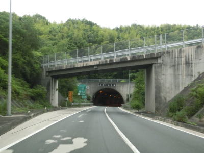 | 引き続き片側2車線の緩やかな上り勾配の道路を走っていると高須トンネルをくぐり、次いで高西トンネルに入る。2つのトンネルの間に市境があるのだが、高西トンネルの大部分は福山市に属しているが、出た所で再び尾道市に入ってしまうため境標識は設置されていない。広島r54西藤ICを通過して側道が合流する辺りでも市境を通るが、以降は福山市に本体を走る。なぜかこの場所にも境標識が設置されていない。 | ||