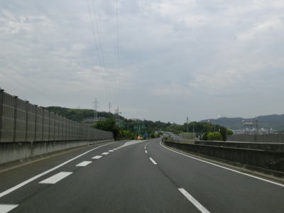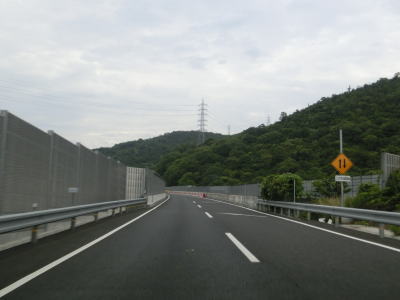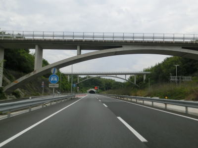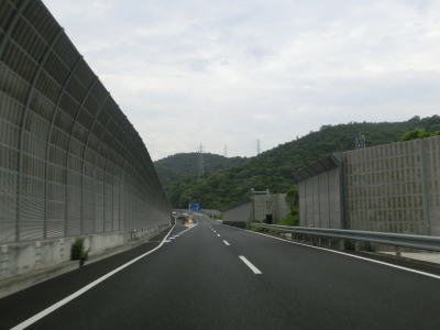 | 396.遮音壁に挟まれた片側2車線道路 | 397.「岡山77km 笠岡32km 福山18km」 | 398.防地トンネル |