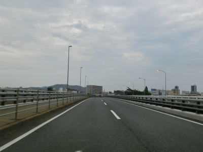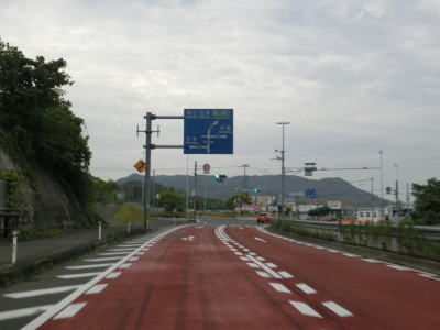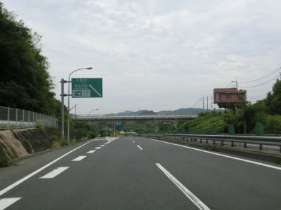 | 広島r48の上を通過して交差点からの流入路が合流してくるが、この今津ランプで自動車専用道路区間が終わる。道路状況の変化は特になく、案内標識が緑色から青色になるくらいである。ただし、標識が緑色の区間も無料で通行する事ができる。今津ランプ以降も松永道路が続いており、松本トンネルと平トンネルをくぐる。 | ||