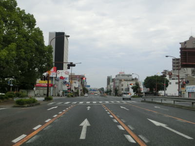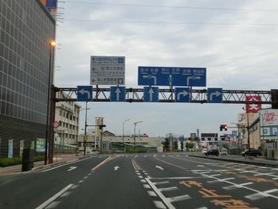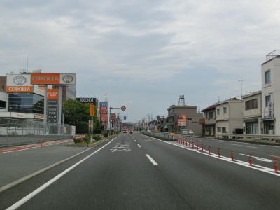 | 西桜町1交差点を過ぎると左側に車線が増えて片側3車線道路になる。その左端車線は7〜9時の間はバス・タクシー・2輪車の専用車線となっている。また、西桜町1東交差点からは自転車通行止規制が敷かれている。と言っても車道を走るのが禁止されているだけで歩道を走行する事ができる。福山市役所の南東で福山郵便局前交差点を通過するが、左折して北上すれば山陽新幹線・JR山陽本線・福塩線の福山駅に行く事ができる。 | ||